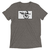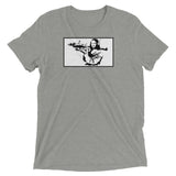 The tri-blend fabric creates a vintage, fitted look. And extreme durability makes this t-shirt withstand repeated washings and still remain super comfortable.