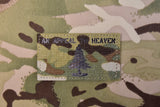 The size of the patch is 3.5" x 2" and features a layer of laser cut Multicam 330D Cordura over a layer of 3M black IR material with hook Velcro backing.
