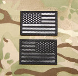 IR Blackout US Flag patch. Each patch measures 3.5" x 2" and features a layer of laser cut Black 300D Cordura over a layer of 3M black IR material, and is Velcro-backed. This listing is for TWO patches - one forward & one reverse.