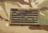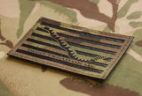 IR Multicam US First Navy Jack patch. The size of the patch is 3.5" x 2" / 9cm X 5cm and features a layer of laser cut Multicam 500D Cordura over a layer of 3M black IR material, and is Velcro-backed.