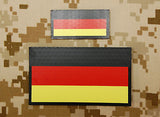 Infrared Germany Flag patch set. The standard size flag is 88mm x 50mm and the mini is 50mm X 30mm. Both patches have hook Velcro backing.