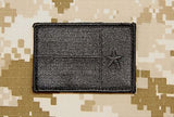 Embroidered reverse Blackout Texas State Flag Patch with Velcro-backing.  Measures 3" x 2" / 75mm x 50mm.