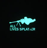 ALL LIVES SPLATTER 3D PVC morale patch set - includes 1 Glow-In-The-Dark version and 1 Multicam color scheme version. Each patch measures 3.5" x 2" with VELCRO® Brand hook fastener and loop backing.
