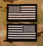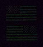 2 x embroidered patch US Stars & Stripes flag in glow-in-the-dark thread; set includes 1 forward facing flag and 1 rear facing flag. Each patch measures 75mm x 50m with Velcro-backing.