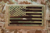 Large IR Multicam US Flag patch. The patch measures 5" x 3" and features a layer of laser cut Multicam 500D Cordura over a layer of 3M black IR material, and is Velcro-backed.