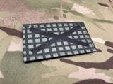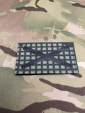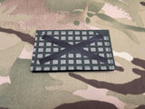 Our Version 1 Saltire/Cross of St. Andrew call sign patch made from a layer of laser cut Night Desert pattern 500D Cordura over a layer of 3M black IR material. The patch measures 3.50" x 2" / 90mm x 50m with VELCRO® Brand hook fastener backing.